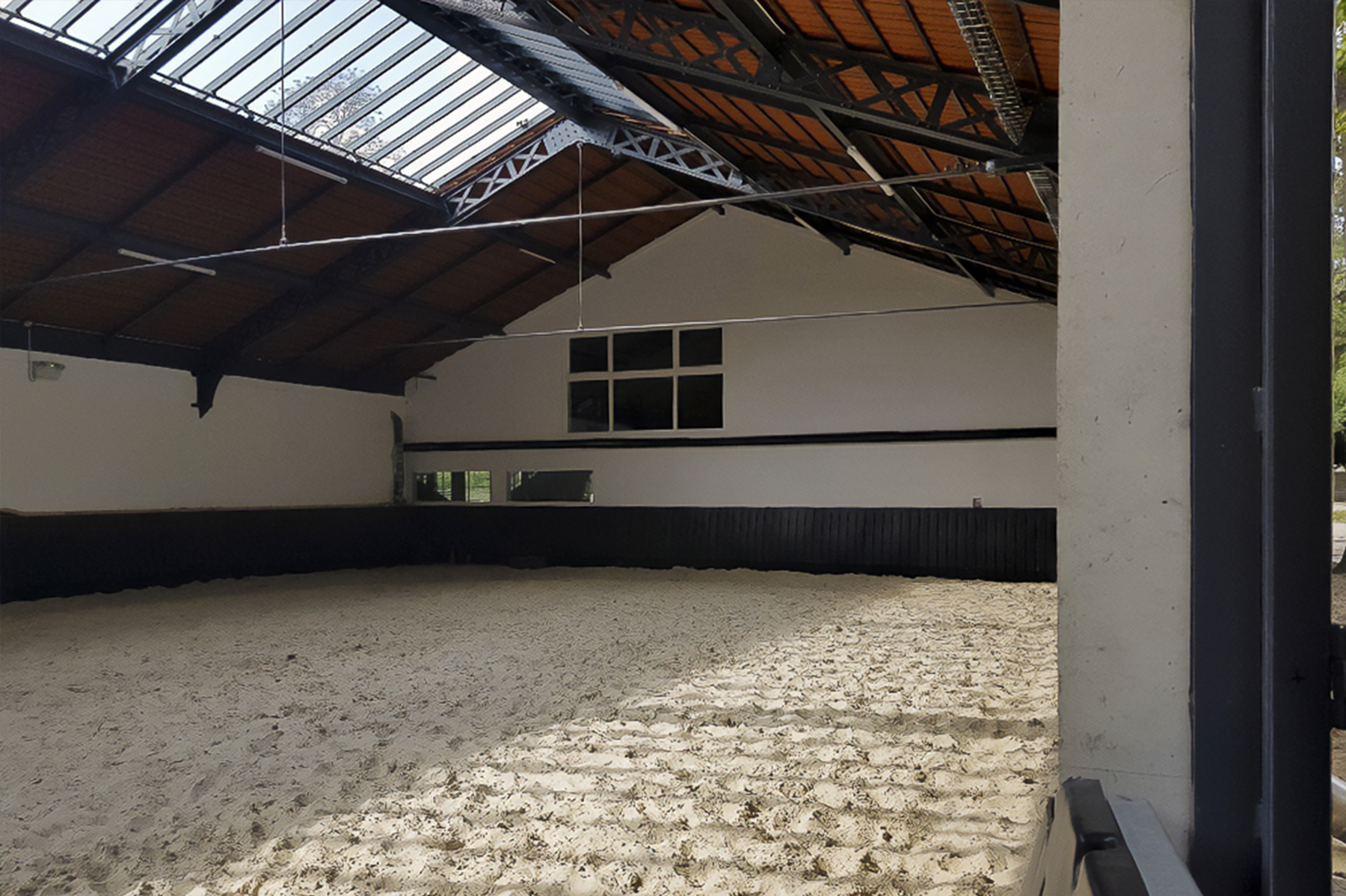 - Un bâtiment secondaire composé : d’un manège de 15,5 m x 24 m, de 9 boxes