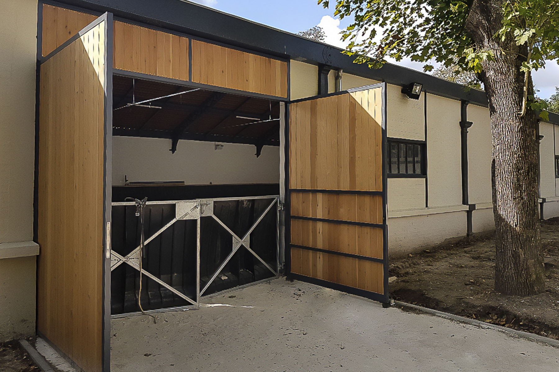 - Rénovation, réaménagement et extension comprenant : aménagement des abords (séparation des flux, végétalisation du site, création d’un dépose-minute et d’une entrée piétonne), rénovation de l’enveloppe et réaménagement intérieur des 3 halles (structure, couverture, charpente, électricité), extension du Poney Club
